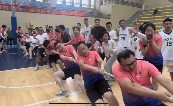 在拔河比赛环节,干警们都摩拳擦掌,跃跃欲试,他们手上抓稳,脚下踩实,在整齐划一的口号声中,拧成一股绳、劲往一处使,在这场力量与耐力的角逐中不断将绳子一截一截往己方送,脸憋得通红也绝不松劲。