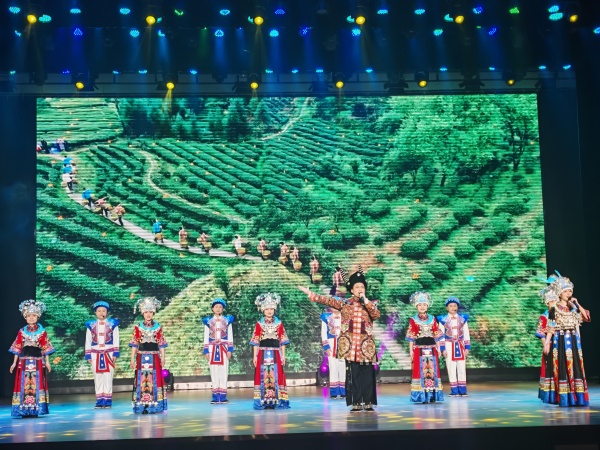 演出伊始,舞台灯光渐亮,古丈县检察院参演干警们身着极具特色的民族服装,精神抖擞地站在台上,脸上洋溢着自信的笑容,伴随着悠扬的音乐响起,他们用饱满的热情和嘹亮的歌声唱起了《古丈茶歌》,歌声中充满了对古丈茶文化的赞美,以及对家乡的热爱。